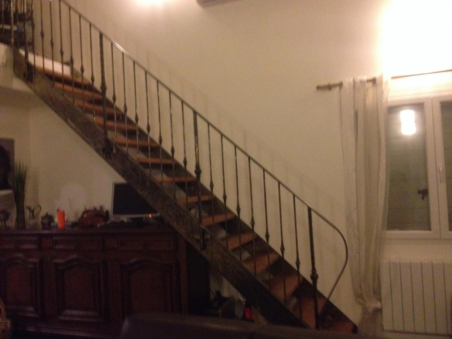 Escalier avec main courante, avec garde corps, réalisé sur mesure, avec marches en bois.